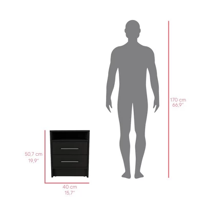 Crafted from durable particleboard, this night stand with drawers includes an open top shelf measuring 14.5″W x 14.8″D for quick access to frequently used items. The sturdy metal handles and clean-lined design make this bedside table a stylish addition to any bedroom furniture collection.
