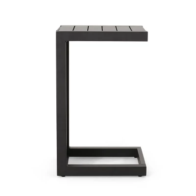 This C-shaped side table features a simple modern design, with its C-profile saving space by fitting beside sofas or chairs for temporary tabletop use.