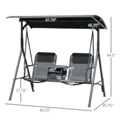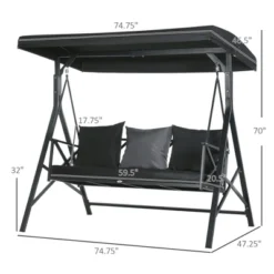 NicBex 3-Seat Outdoor Porch Swing Bench With Armrests And Adjustable Canopy For Patio Bedroom Garden